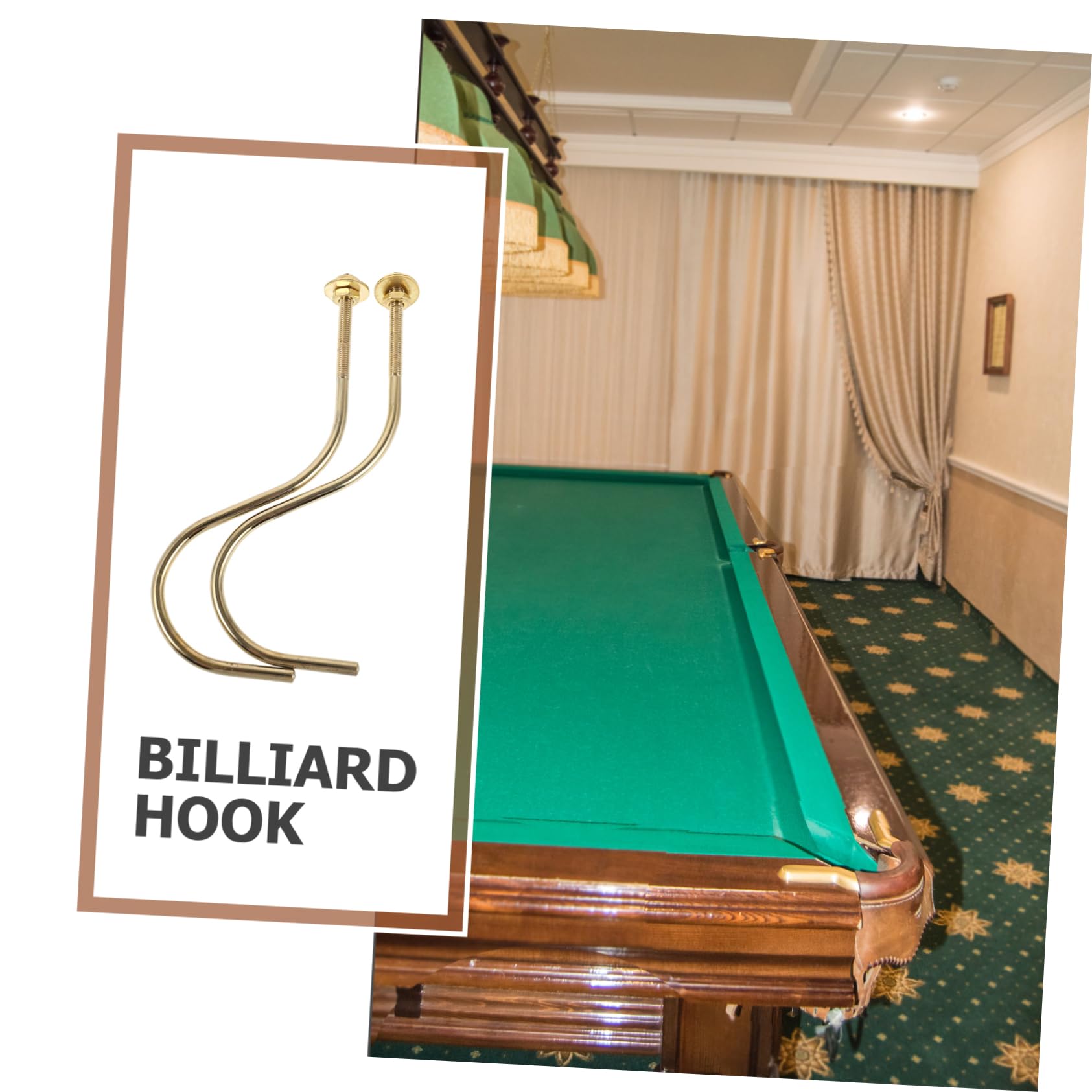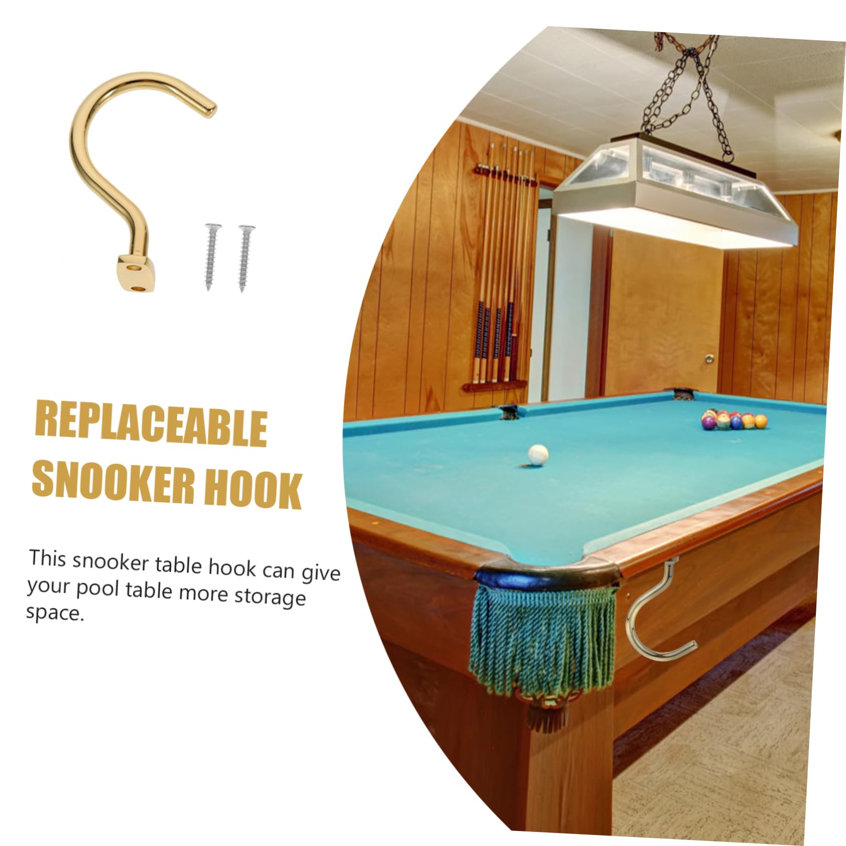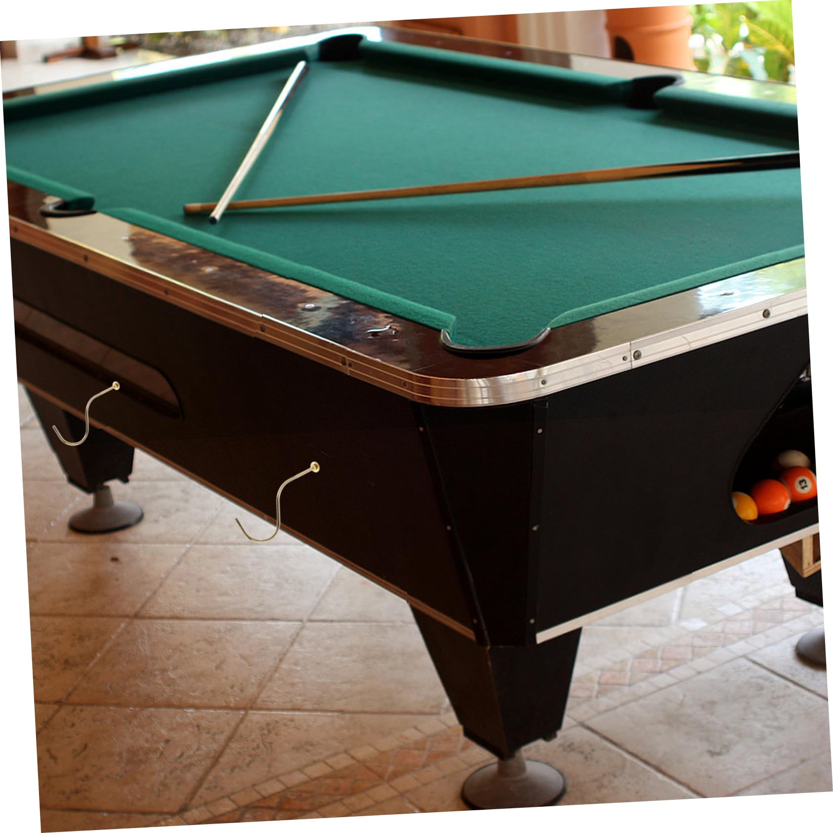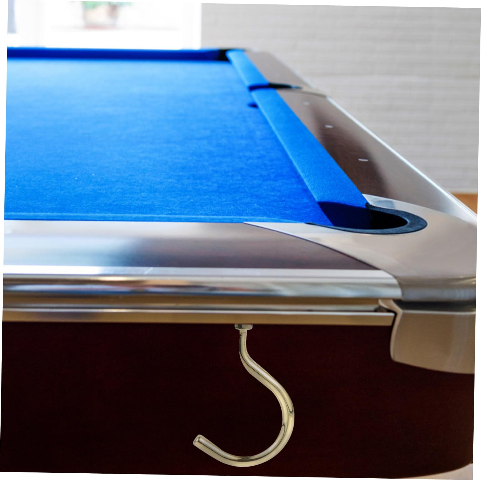 Diese beiden silbernen Billard-Haken bringen Ordnung an deinen Billardtisch! Aus stabilem Eisen gefertigt, halten sie sicher deine Queues und Dreiecke. Maße: 9x6x3,6cm - perfekt für die meisten Queues. Einfache Montage mit den mitgelieferten Schrauben. Die Haken schließen bündig mit der Tischkante ab und sehen super clean aus. Rostfrei und langlebig - da hast du lange Freude dran. Endlich kein herumliegendes Billard-Zubehör mehr! Praktisch und platzsparend - ein Must-Have für jede Billard-Ecke.