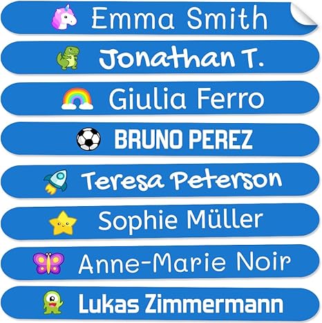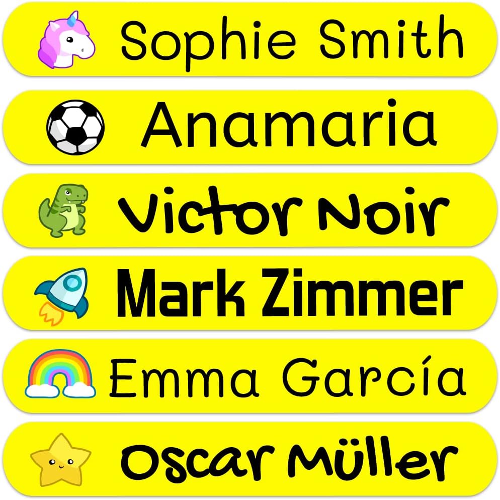 Nie wieder verlorene Stifte oder Brotdosen! Mit diesen 50 personalisierbaren Aufklebern bringst du Ordnung in Schulsachen und Haushalt. Größe 6x2cm - perfekt für Bücher, Brotdosen und Trinkflaschen. Wasserdicht, spülmaschinenfest und mikrowellengeeignet. Haftet auf allen glatten Oberflächen. Mit Symbolen und Text nach Wahl (bis 25 Zeichen). Einfach aufkleben, 24 Stunden warten - hält ewig! Perfekt für Kindergarten, Schule oder Büro. Mach deine Sachen unverwechselbar!