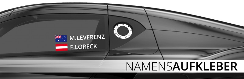 Einfach deinen Wunschnamen eingeben (z.B. 'Max Mustermann') und die gewünschte Größe wählen - 3cm, 4cm oder 5cm Höhe. Dazu kommt noch deine Nationalflagge für den ultimativen Racing-Look!