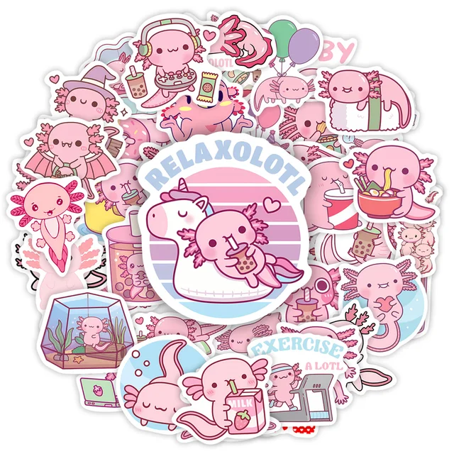 50 Axolotl Aufkleber Set - Bunte Wasserfeste Sticker Für Trinkflaschen & Mehr