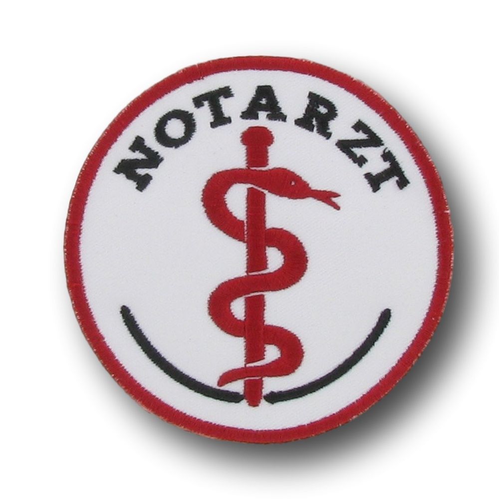 Mit 8cm Durchmesser ist der Aufnäher gut sichtbar, aber nicht zu aufdringlich. Die weiße Schrift auf rotem Grund entspricht den klassischen Rettungsdienst-Farben.