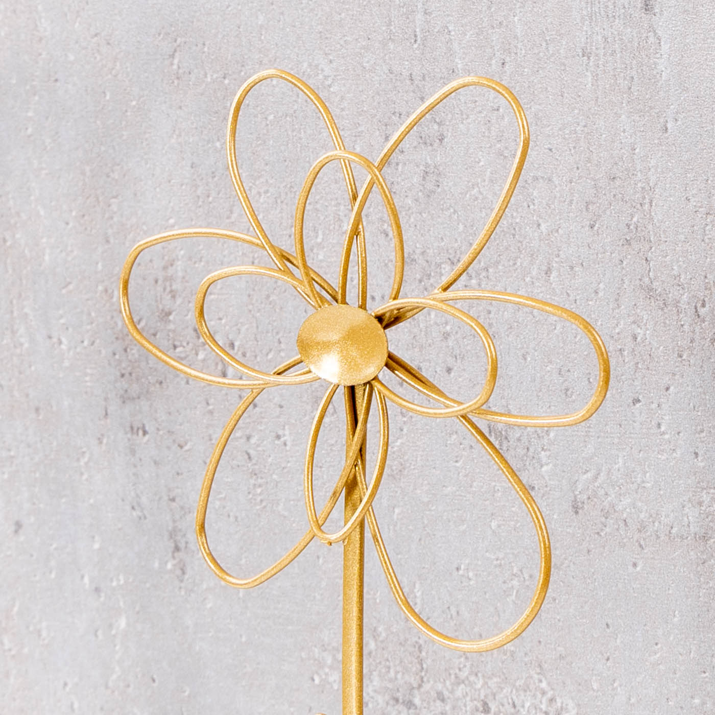 3er Set Deko Aufsteller Blume - Goldene Metallblumen Auf Betonsockel Mit Smile Love Enjoy