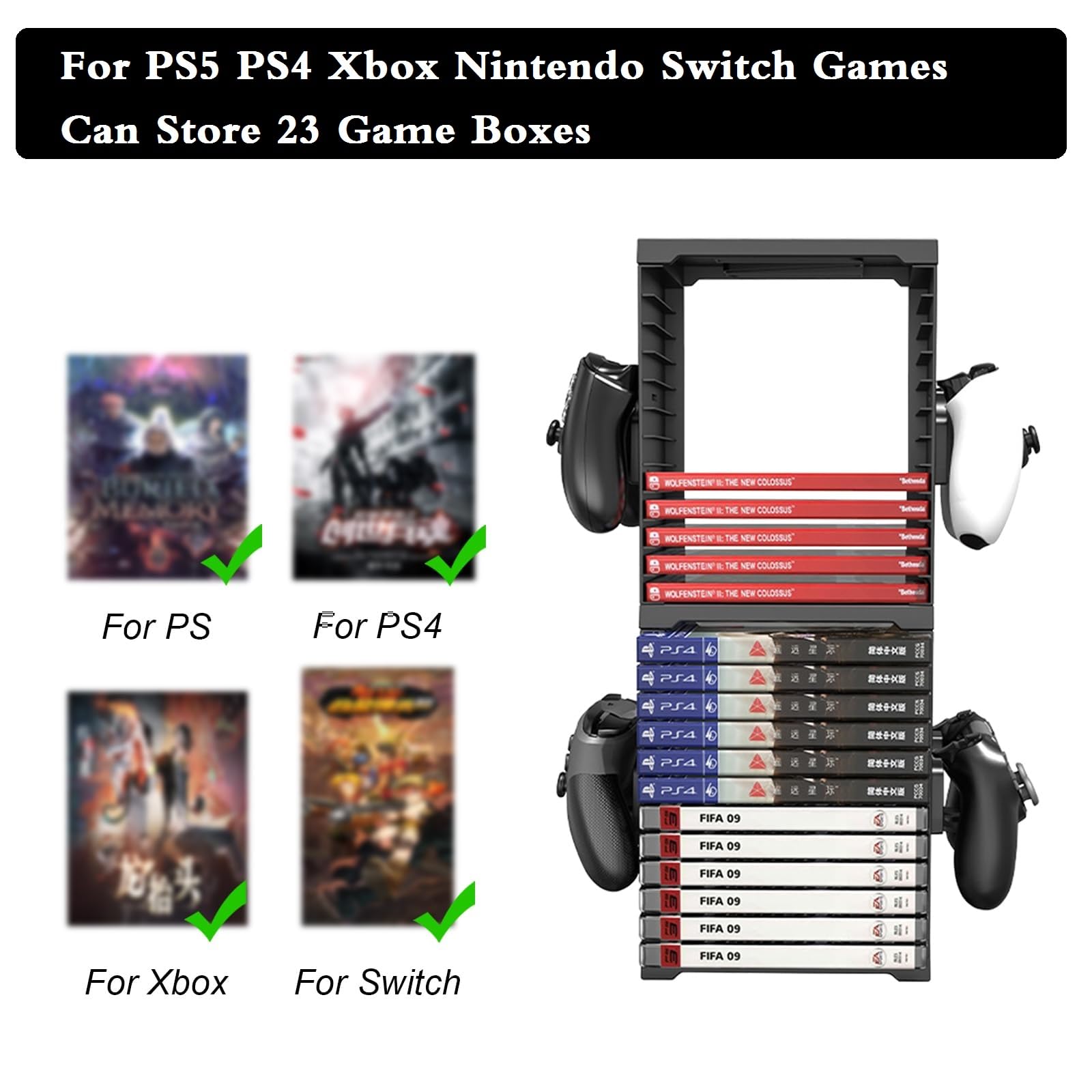 Endlich Ordnung in deiner Spielesammlung! Dieser praktische Halter aus robustem ABS-Material fasst bis zu 19 Spiele - alles griffbereit und sicher verstaut. Super flexibel: Kann sowohl vertikal als auch horizontal aufgestellt werden, spart Platz auf jedem Schreibtisch oder TV-Möbel. Einfach in 2 Minuten zusammengebaut, ohne Werkzeug nötig. Die seitlichen Halterungen sind perfekt für Controller oder Kopfhörer. Deine wertvollen Spieldiscs sind so vor Kratzern und Beschädigungen geschützt. Nie wieder suchen - alle Lieblingsspiele immer im Blick. Ein Must-Have für jeden echten Gamer, der Wert auf Ordnung und schnellen Zugriff legt!