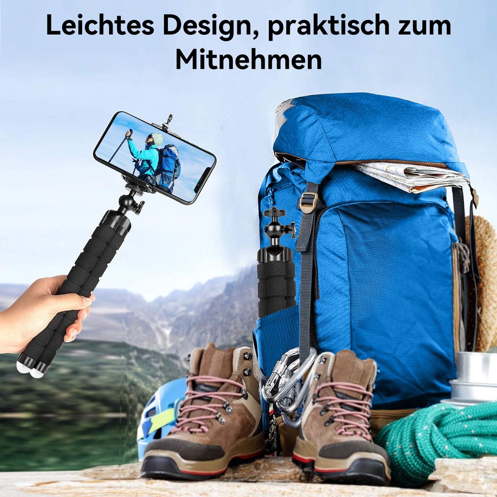 Perfekt für alle, die stabile Videos und Fotos machen wollen! Dieses superleichte Mini-Stativ wiegt nur 280 Gramm und passt in jede Tasche. Ob du Reels aufnimmst, Video-Calls machst oder einfach scharfe Fotos schießen willst - mit dem verstellbaren Schwenkkopf kannst du jeden Winkel von 0-360 Grad einstellen. Die Beine lassen sich von 13cm auf 23cm ausziehen und haben rutschfeste Gummifüße für bombenfeste Standfestigkeit. Mit der universellen 1/4-Zoll-Schraube passt es an fast alle Kameras, Actioncams und Smartphones (Handyhalter separat). Der praktische Schieberegler an den Beinen macht die Winkelverstellung super einfach. Maximal 2kg Belastung - mehr als genug für die meisten Spiegelreflexkameras. Einfach unverzichtbar für Content Creator, Reisende und Hobbyfotografen!