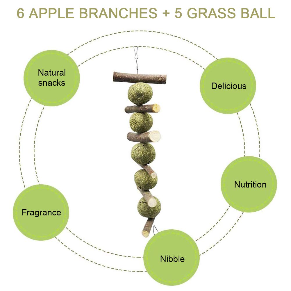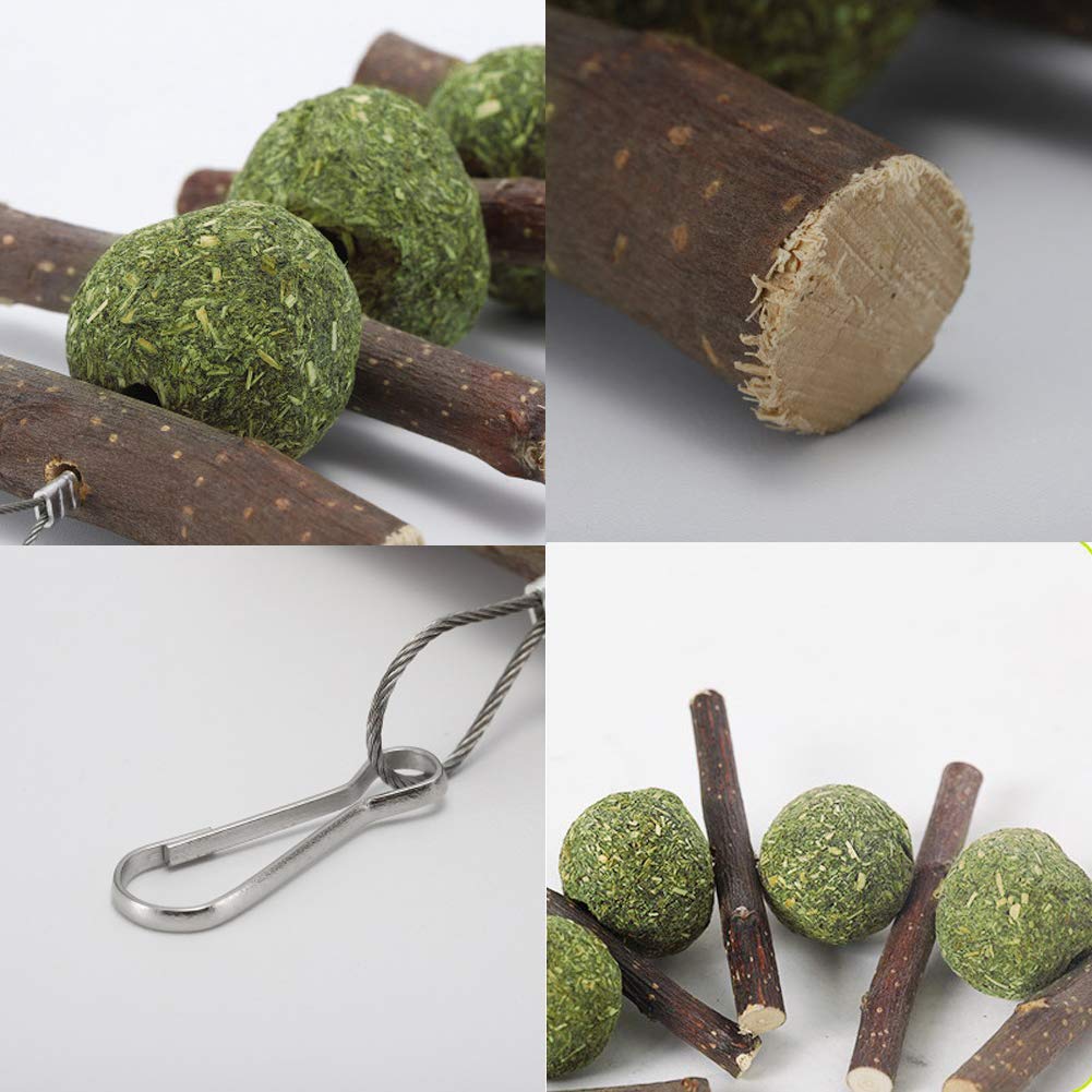 2 Stück Kaninchen Kauspielzeug Aus Apfelholz - Natürliche Kaustäbchen & Graskugeln Für Zahnpflege