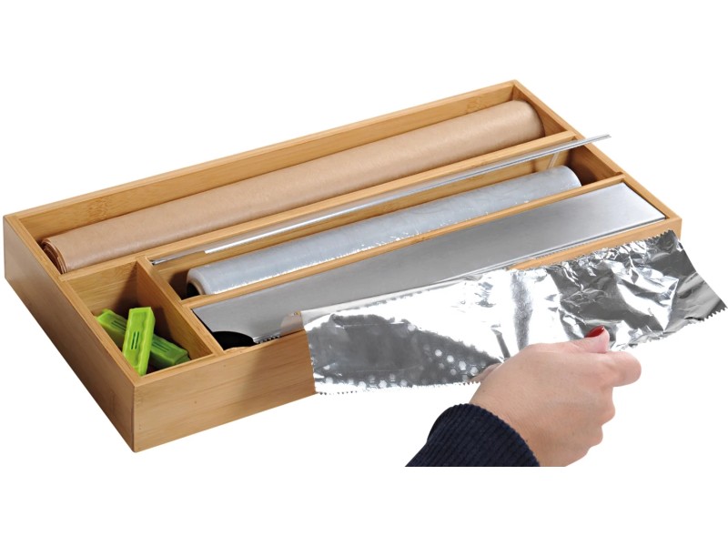 Aus 100% FSC-zertifiziertem Bambus - nachhaltig und robust. Passt für alle handelsüblichen Küchenfolien bis 30 cm Länge. Die praktischen Abreißkanten aus Edelstahl sorgen für sauberes Abtrennen der Folie.