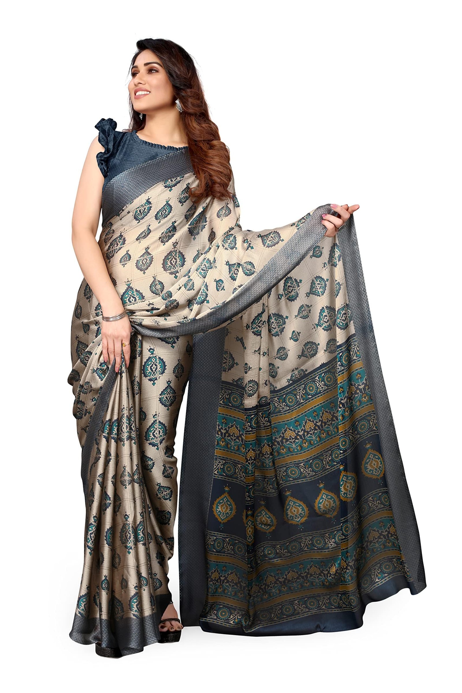 TreegoArt Damen Saree Aus Baumwoll-Seide - Kalamkari Print Für Feste & Partys