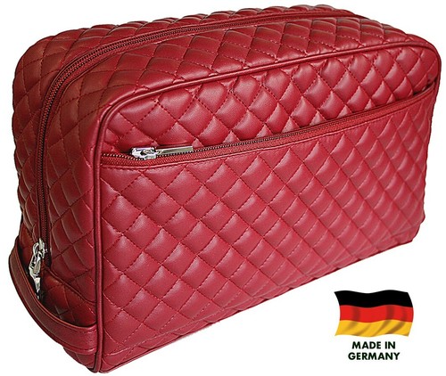 GERMANUS Kosmetiktasche Ina Aus Dickem Leder - Handgemachter Kosmetikkoffer Mit Vielen Fächern