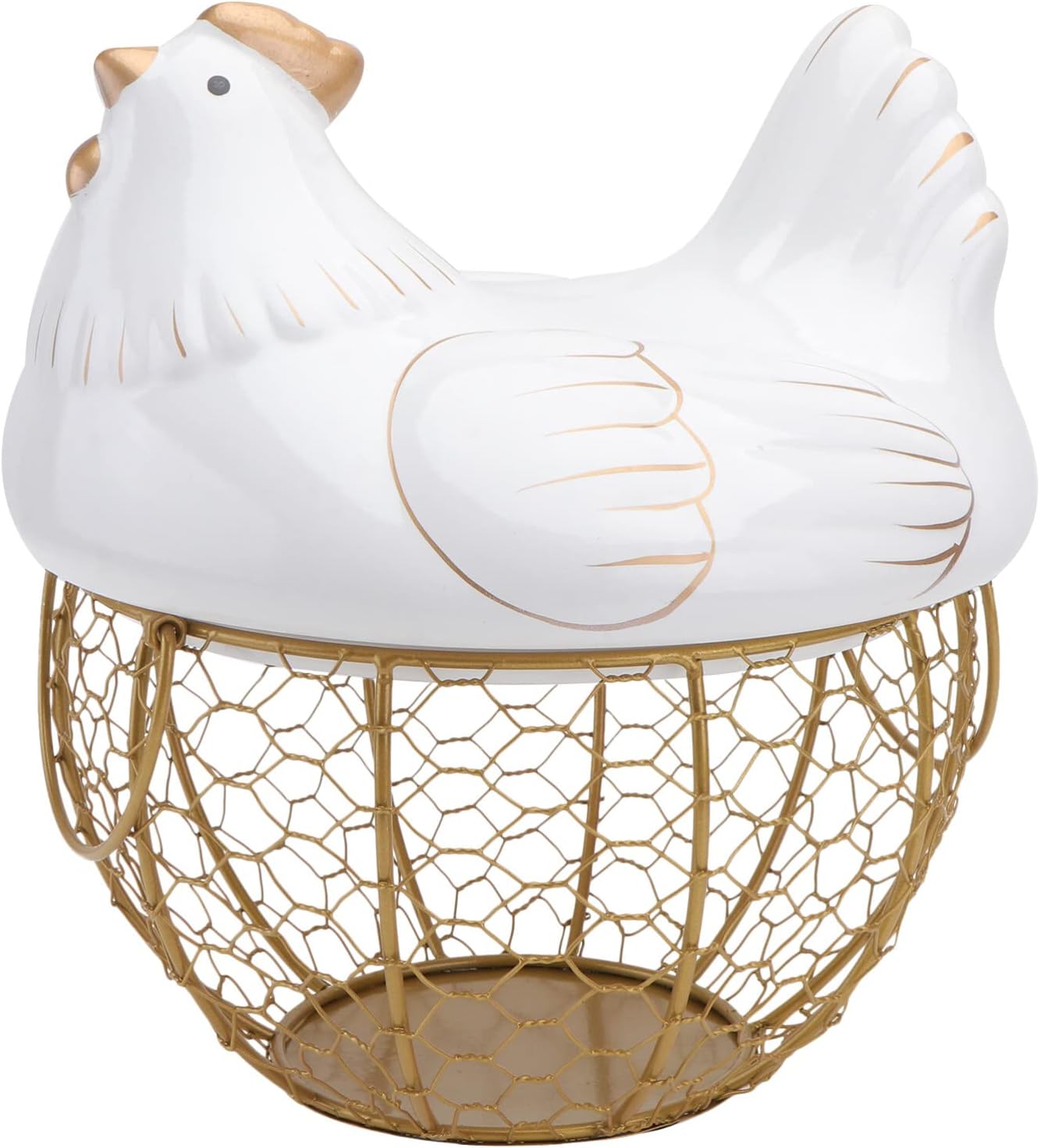 Total niedlicher Eierkorb in Hühner-Form! Aus robustem Metall, 18x18x15cm groß. Die breite Öffnung macht das Eiersammeln super einfach - bis zu 24 Eier passen rein. Das offene Drahtdesign sorgt für perfekte Belüftung, damit die Eier frisch bleiben. Mit praktischem Griff zum bequemen Tragen. Sieht nicht nur süß aus, sondern schützt deine Eier auch vor Bruch. Perfekt für die Küche oder den Bauernhof. Kann auch für Obst, Gemüse oder als Deko verwendet werden. Ein echter Hingucker in jedem Zuhause! Rustikales Design, das immer gut ankommt.