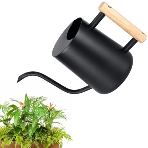 Diese wunderschöne Gießkanne ist nicht nur praktisch, sondern ein echter Hingucker! Aus hochwertigem Edelstahl 304 gefertigt, hält sie ewig und rostet nicht. Der lange Auslauf ist perfekt um auch schwer erreichbare Pflanzen zu gießen - besonders toll für Sukkulenten und kleine Topfpflanzen! Mit 1 Liter Fassungsvermögen musst du nicht ständig nachfüllen. Der komfortable Holzgriff liegt super in der Hand und das schwarze Design sieht einfach stylisch aus. Ob im Wohnzimmer, Büro oder auf dem Balkon - diese Gießkanne macht überall was her! Einfach befüllen und deine Pflanzen verwöhnen - sie werden es dir danken!