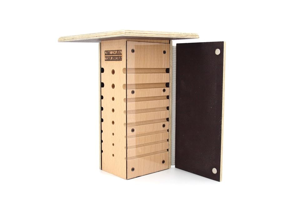 Wow, mit diesem Wildbienen-Schaukasten kannst du den Bienen beim Wohnungsbau zusehen! Aus zertifiziertem Eichenholz gebaut und mit 10 Nistgängen ausgestattet, ist er perfekt für Schulen, Kindergärten oder deinen eigenen Garten. Die transparente Polycarbonat-Platte lässt dich alles beobachten - vom Ei über die Larve bis zum Schlupf. Und das Beste: Die Platte ist beschreibbar, sodass du Daten und Beobachtungen direkt festhalten kannst. Mit ca. 16x15x4,5cm ist er kompakt aber funktional. Einfach wettergeschützt aufstellen und schon kannst du den faszinierenden Lebenszyklus der Wildbienen live miterleben. So macht Naturkunde richtig Spaß!
