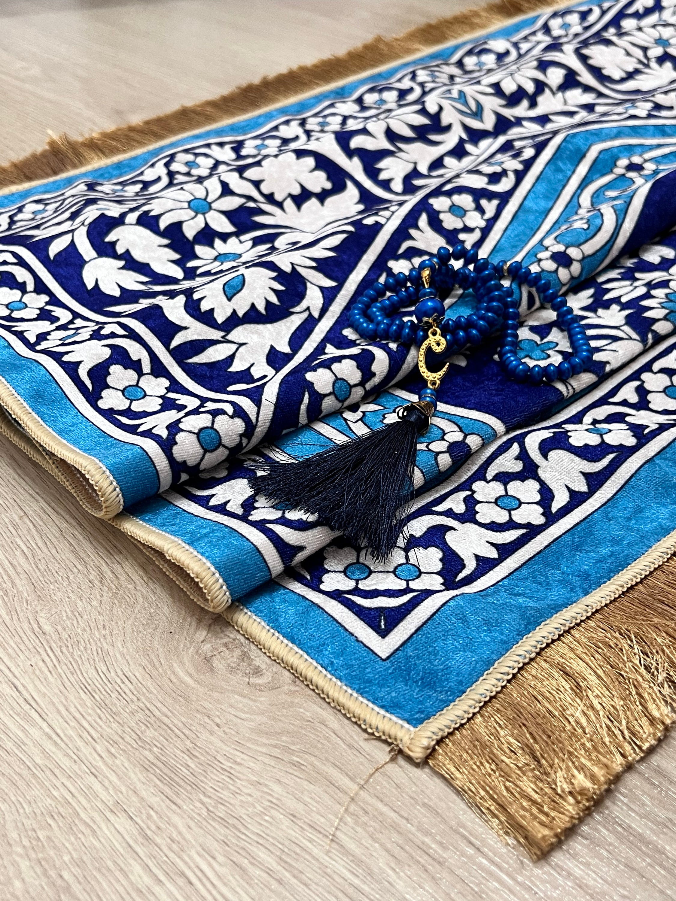 Komfort und Spiritualität vereint! Dieser wunderschöne Gebetsteppich aus weichem Flanell macht jedes Gebet zu einer besonderen Erfahrung. Mit den Maßen 65x110 cm bietet er ausreichend Platz für angenehmes Beten. Die gepolsterte Oberfläche schont Knie und Gelenke bei längeren Gebeten - besonders wichtig für ältere Menschen oder bei gesundheitlichen Einschränkungen. Die eleganten Quasten an jeder Ecke verleihen dem Teppich eine besondere Note. Die rutschfeste Unterseite sorgt für sicheren Halt auf allen Böden. Leicht und faltbar - ideal für unterwegs oder die Aufbewahrung zu Hause. In den Farben Beige und Schwarz erhältlich, passend für jeden Geschmack. Komplett mit Tasbeeh (Gebetskette) im Set - alles was du für deine Gebete brauchst. Perfekt als Geschenk für Ramadan, Eid oder andere besondere Anlässe. Ob für dich selbst oder als aufmerksames Geschenk für Familienmitglieder und Freunde - dieser Gebetsteppich bringt Freude und Erfüllung in deine spirituelle Praxis.