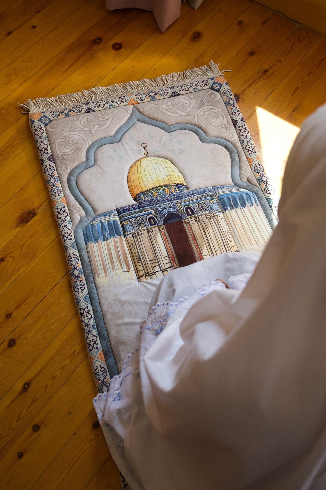 Gepolsterter Gebetsteppich Aus Flanell - 65x110 Cm Mit Quasten Für Ramadan & Eid