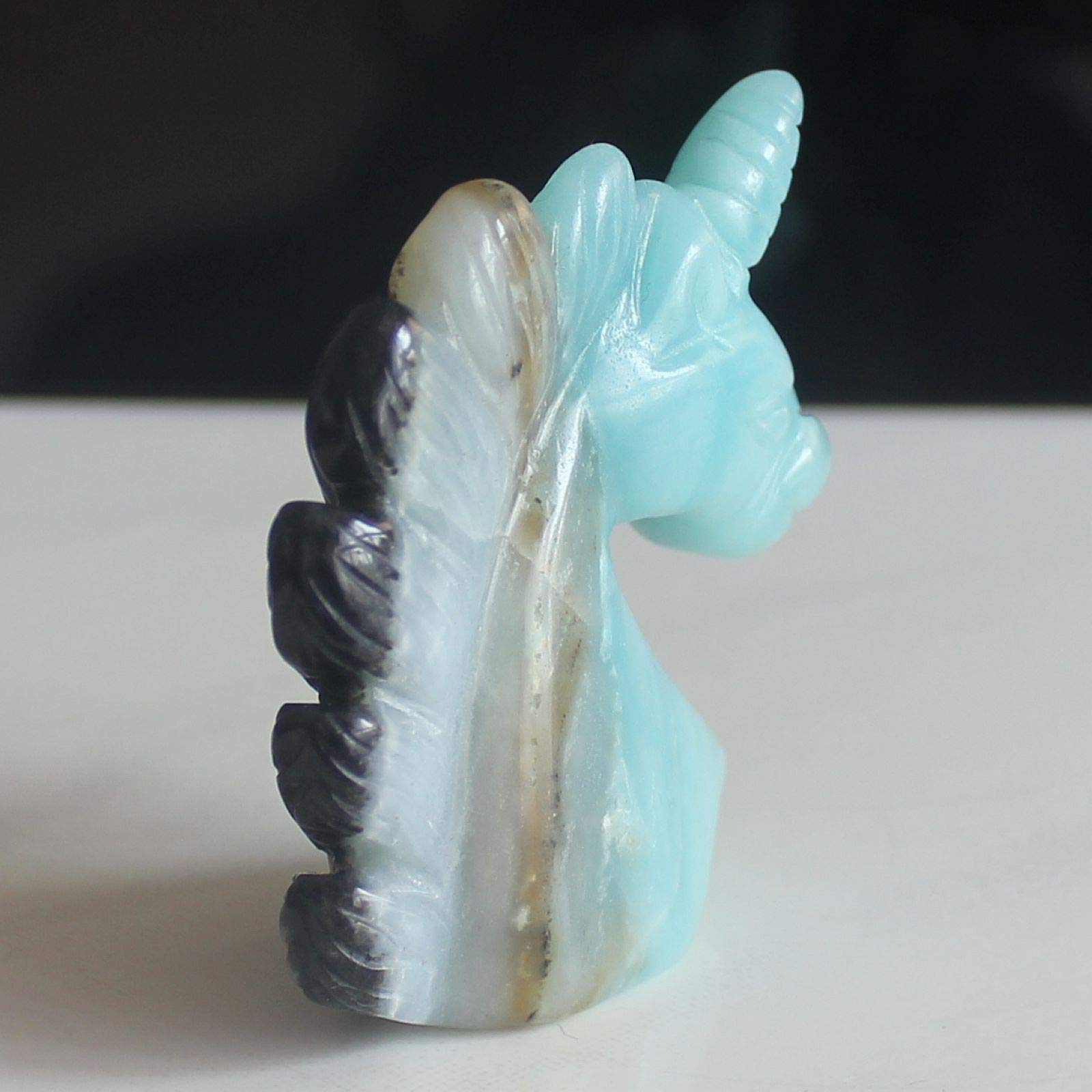 Handgeschnitzte Einhorn Figur Aus Fluorit Kristall - 5,1cm Naturstein Deko Für Büro & Zuhause