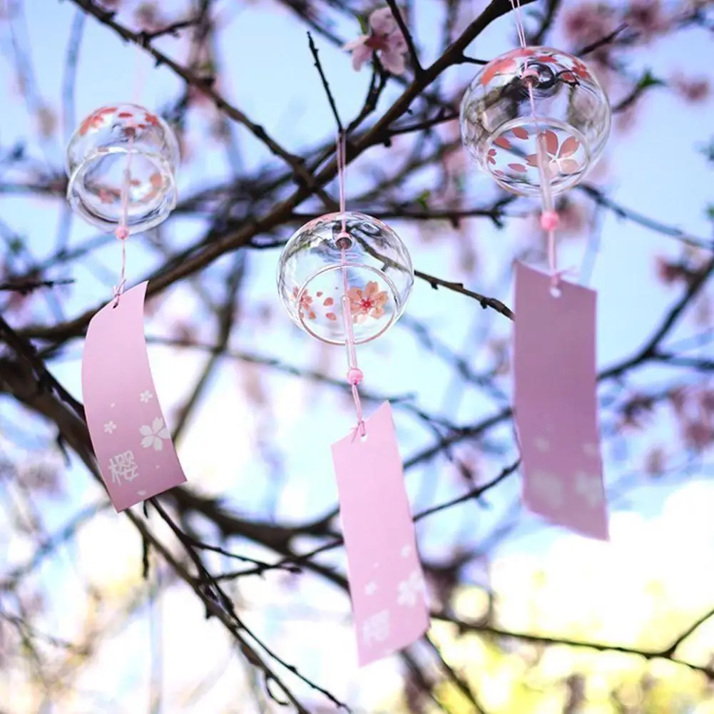 Japanische Windspiele Aus Glas | Kirschblüten Design | 42cm Hängedekoration Für Garten & Balkon