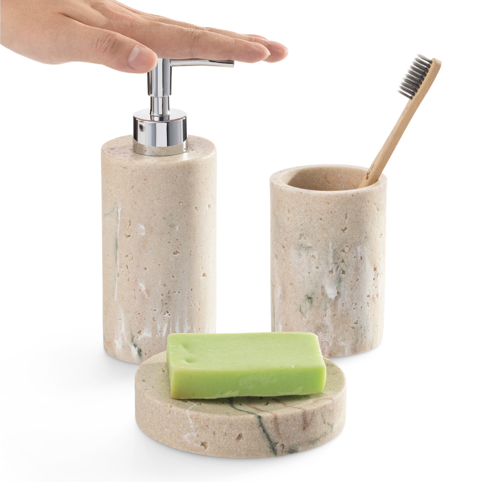 Badezimmer-Set Aus Glas Mit Mattgold - Seifenspender, Seifenschale & Zahnputzbecher Im 3er Set