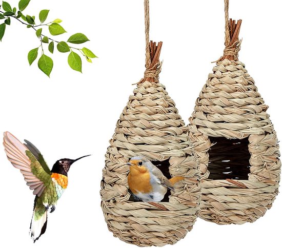 2 Stück Vogelnester Aus Heu - Hängende Nisthilfe Für Wellensittiche, Meisen & Kleine Vögel