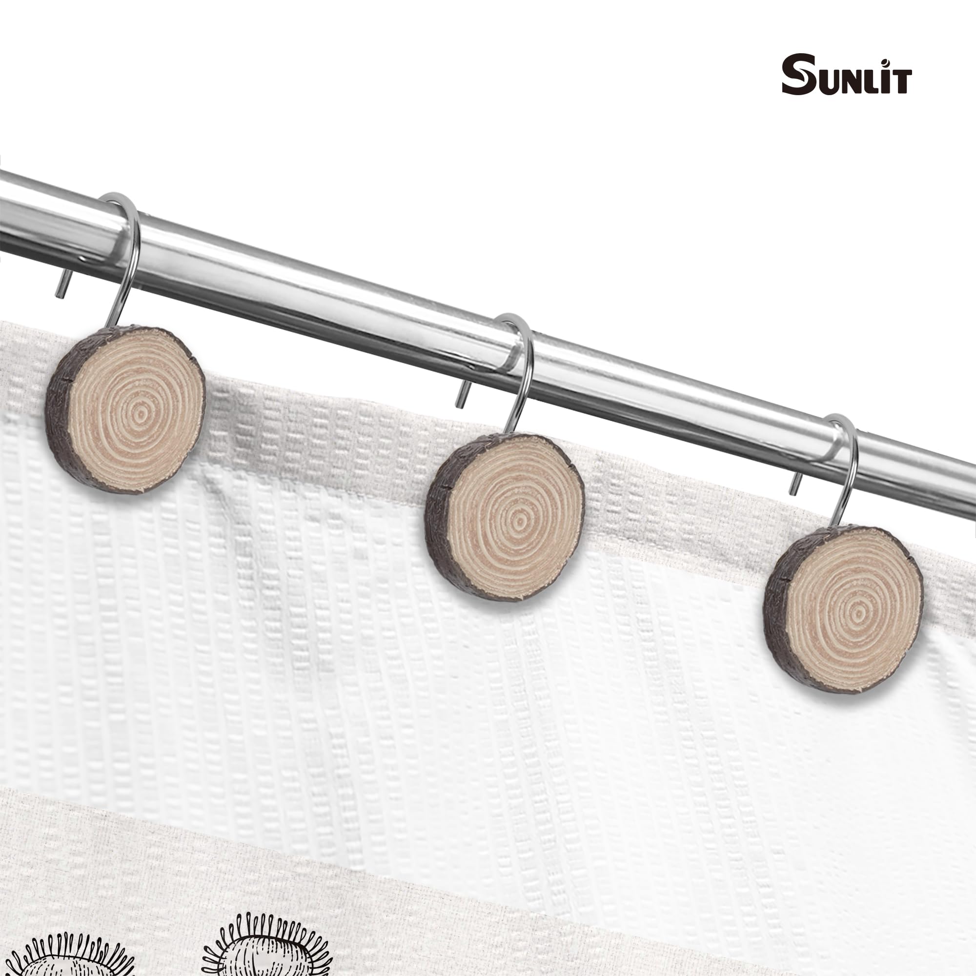Sunlit Farmhouse Duschvorhanghaken Aus Holz - 12 Stück Rustikale Badezimmer-Deko