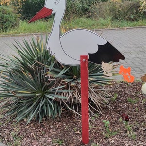 Ein Baby kommt? Dann darf der Storch nicht fehlen! Dieser XL Storch aus stabilem Holz ist 55cm hoch und beidseitig bunt lackiert. Mit abnehmbarem Gartenspieß kannst du ihn im Garten, auf dem Balkon oder einfach im Kinderzimmer aufstellen. Wasserdicht und wetterfest - also perfekt für draußen geeignet. Als Geschenk zur Geburt, Taufe oder Hochzeit immer eine tolle Idee. Du kannst ihn sogar mit einem Wunschnamen personalisieren lassen! Inklusive rotem und blauem Band für den Schnabel. Ohne Stab auch als Wanddekoration nutzbar. Ein klassisches Geschenk, das immer Freude macht und noch Jahre später an den besonderen Tag erinnert.