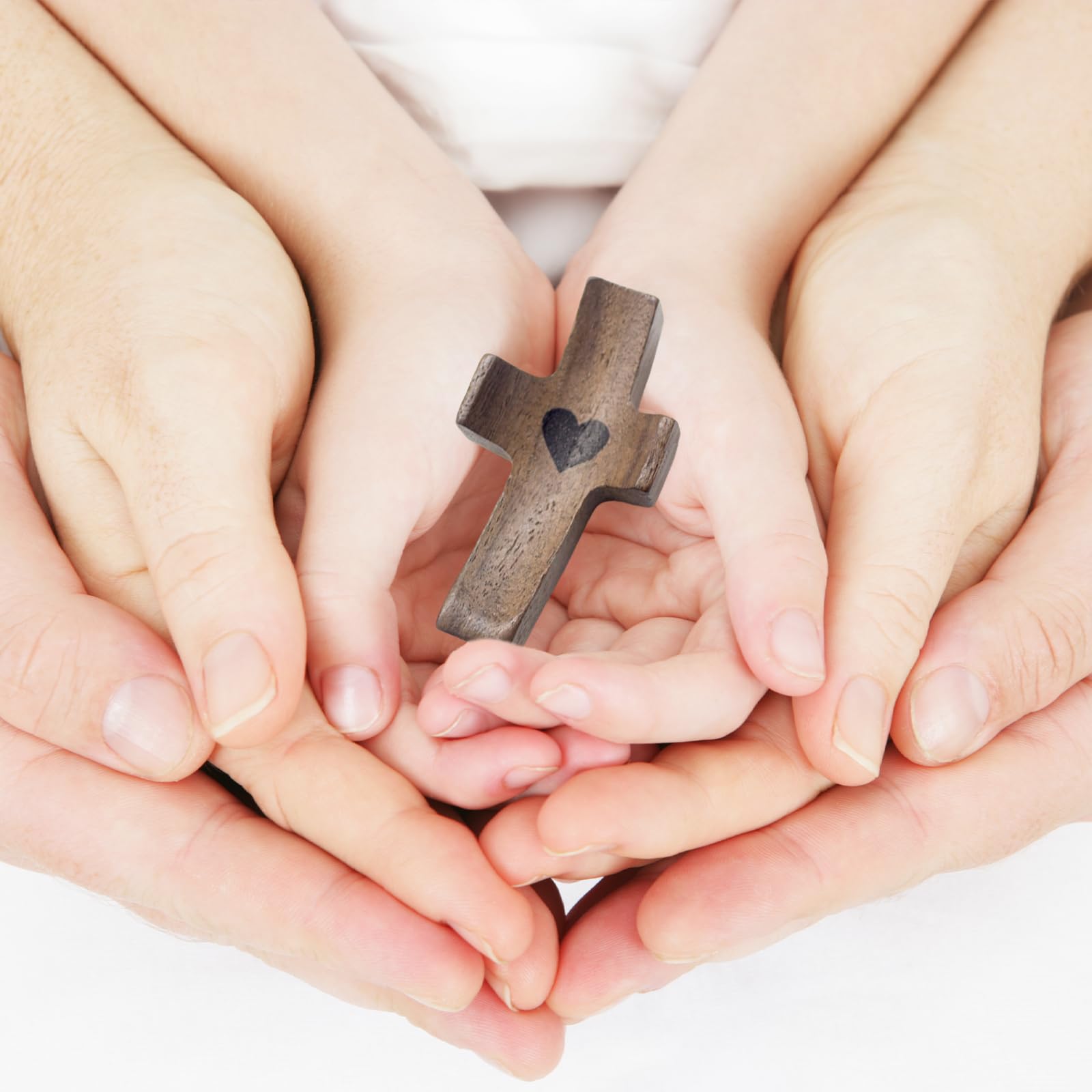 Das besondere Detail: Jedes Kreuz hat ein ausgeschnittenes Herz in der Mitte, das als Symbol für Liebe und Trost steht. Die Oberfläche ist glatt poliert und fühlt sich richtig warm und natürlich an.