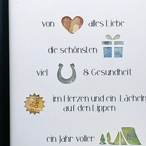 Wie schenkt man Geld auf besondere Art? Mit diesem niedlichen Holzpferd! Einfach die klappbare Holztafel öffnen, Geldschein in den Schlitz schieben - schon wird das Geld Teil des Pferdemotivs. Aus hochwertigem Holz gefertigt, ist es ein langlebiges Andenken. Perfekt für Reiter, Pferdebesitzer oder einfach alle Pferdefans. Ob für die Anschaffung eines Pferdes, Reitstunden oder Turnierbesuche - dieses Geschenk kommt garantiert gut an! Maße: 13x10cm. Einfache Montage, kein Werkzeug nötig. Mach das nächste Geldgeschenk zu einem besonderen Erlebnis!