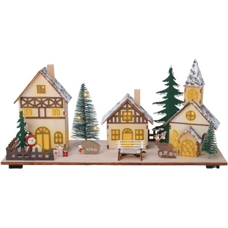 Beleuchtetes Weihnachtshaus Aus Holz | LED Dekoration Mit Batterie | Tischdekoration