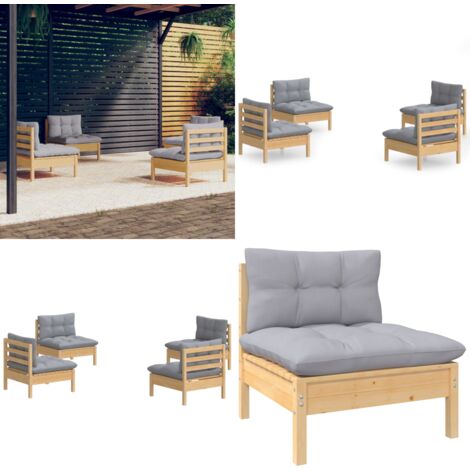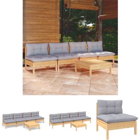 Garten Lounge Set Aus Kiefernholz 4-tlg. Mit Grauen Kissen - Ecksofa & Fußhocker