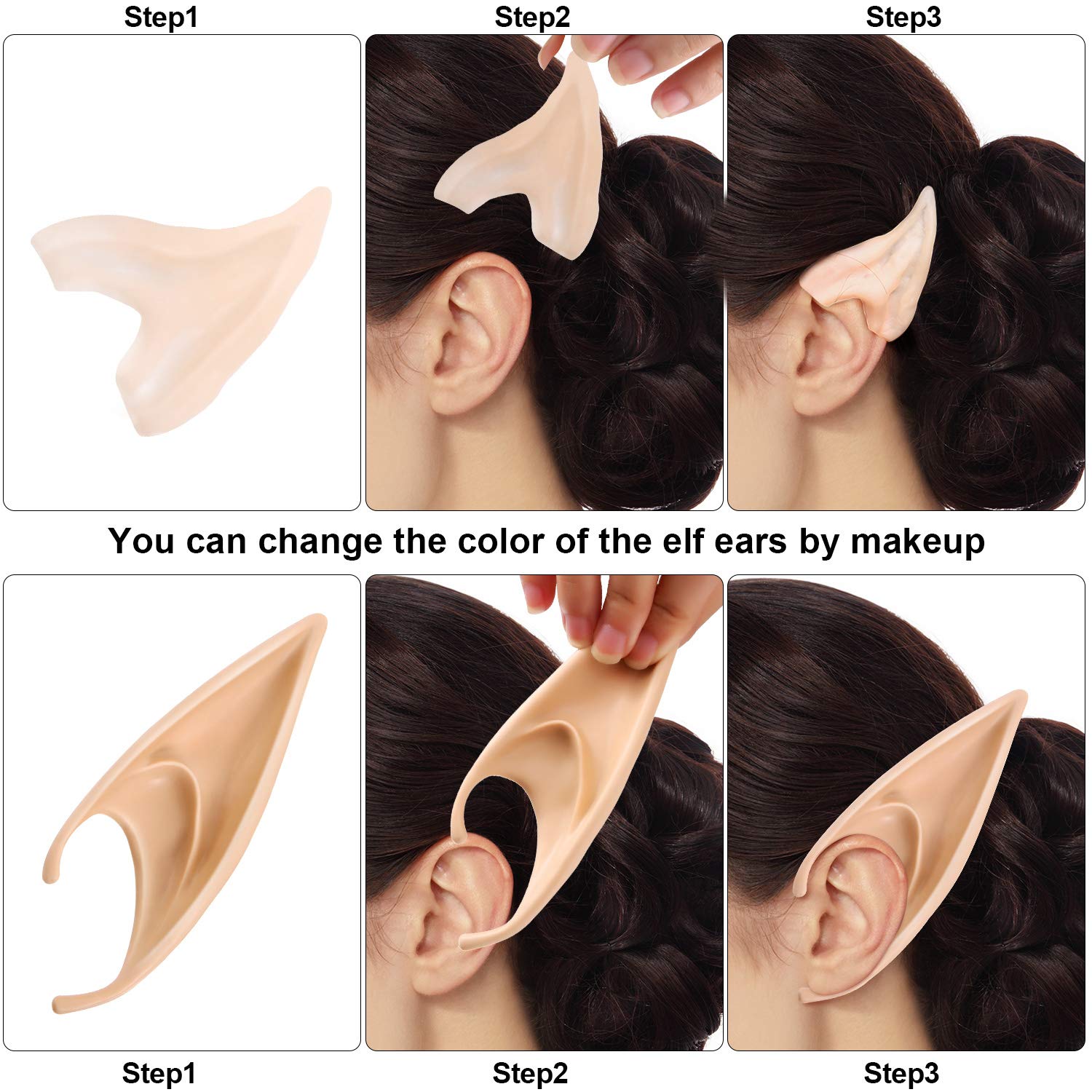 Verwandle dich in eine mystische Elfe! Diese 6 Paar Elfenohren aus weichem Latex sind perfekt für Cosplay, Karneval oder Halloween. Jedes Ohr ist 6,5x5 cm groß und passt den meisten Menschen. Super einfach anzubringen - einfach auf die Ohren klemmen oder mit doppelseitigem Klebeband fixieren. Das Material ist super flexibel, lässt sich biegen ohne zu brechen und ist wiederverwendbar. Du kannst die Ohren sogar mit Foundation anmalen, damit sie wie deine eigene Haut aussehen! Perfekt für Elfen, Feen, Vampire oder andere Fantasy-Charaktere. Mit 6 Paaren hast du genug für verschiedene Looks oder falls mal was kaputt geht. Einfach aufsetzen und in eine andere Welt eintauchen!