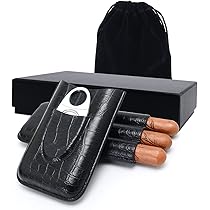 Stylischer Begleiter für Zigarrenliebhaber! Dieses elegante Zigarrenetui aus PU-Krokodilleder bietet Platz für 3 Zigarren und hat ein integriertes Zedernholzfutter für perfekte Feuchtigkeitskontrolle. Inklusive hochwertigem Zigarrenschneider aus Edelstahl mit 22mm Durchmesser. Perfekt für unterwegs - ob Geschäftsreise oder Urlaub. Das kompakte Design passt in jede Jackentasche. • Material: PU-Krokodilleder • Kapazität: 3 Zigarren • Mit Zedernholzfutter • Inkl. Zigarrenschneider • Schneider-Durchmesser: 22mm • Maße: 167x75x42mm • Farbe: Schwarz • Mit Bienenwachs-Versiegelung • Edelstahl-Schneider • Perfekter Zigarrenschutz • Elegantes Design • Ideal für Reisen • Perfektes Geschenk • In Geschenkbox • Auch für Anfänger • Profi-Qualität • Langlebiges Material • Einfache Handhabung • Macht jedes Raucherlebnis premium