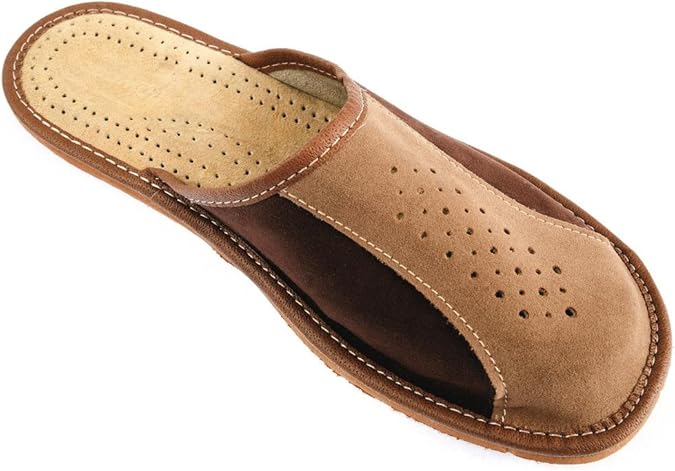 Diese APREGGIO Herrenhausschuhe aus 100% Leder sind pure Bequemlichkeit! Handgefertigt aus hochwertigem Glattleder - robust und langlebig. Mit fester Sohle für optimalen Halt und Stabilität - reduziert Rutschgefahr! Offenes Design sorgt für gute Belüftung - perfekt als Sommerhausschuhe. Einfach reinschlüpfen - kein Bücken oder Fummeln. In Größen 40-46 erhältlich - für jeden Fuß die passende Größe. In verschiedenen Farben - passt zu jedem Einrichtungsstil. Ob zum Faulenzen daheim oder um Gäste zu beeindrucken - diese Hausschuhe machen immer eine gute Figur. Einfach bestellen und ultimativen Wohlfühl-Komfort genießen - deine Füße werden's dir danken!
