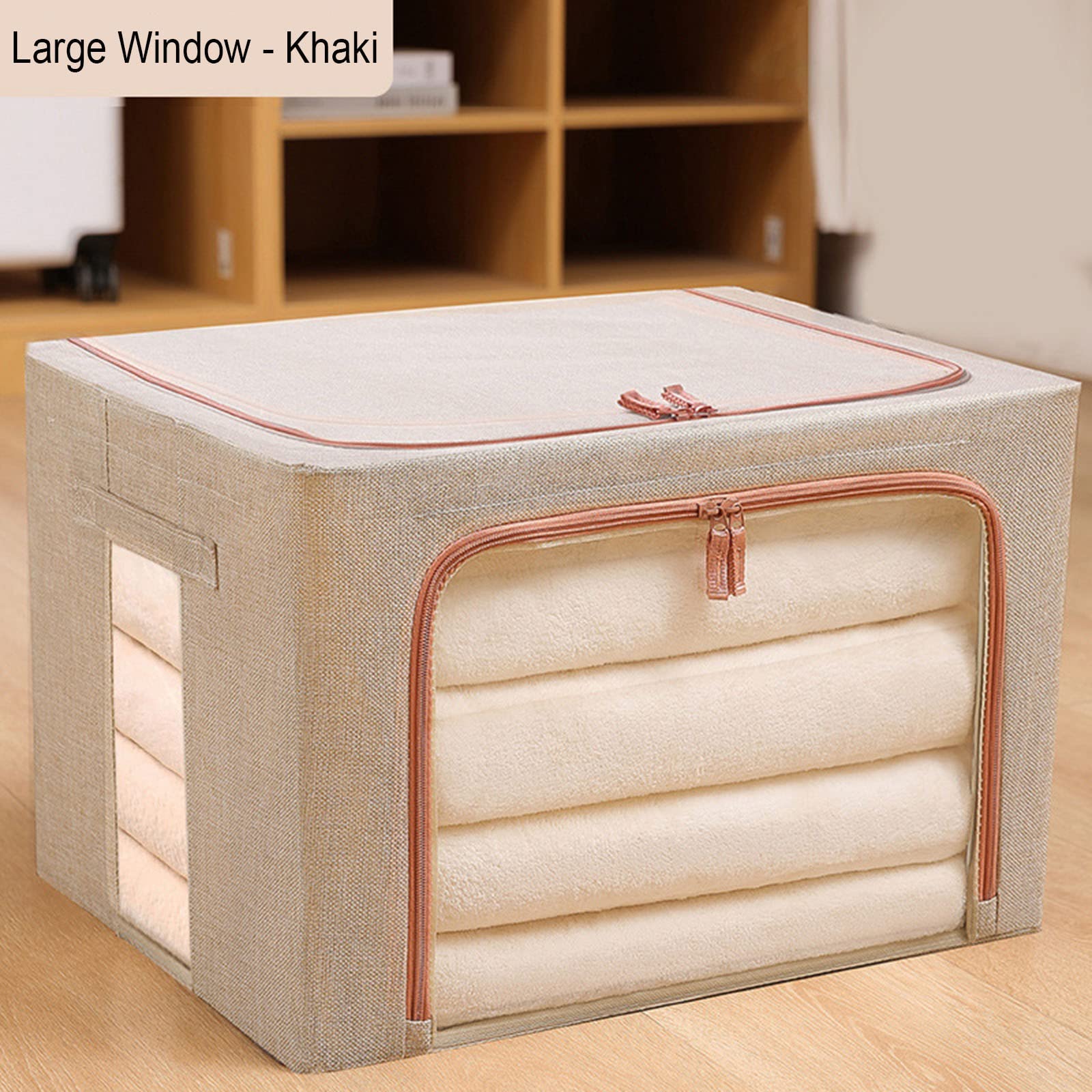 Faltbare Aufbewahrungsbox Aus Leinen - 3 Stück Khaki 58x40x30cm