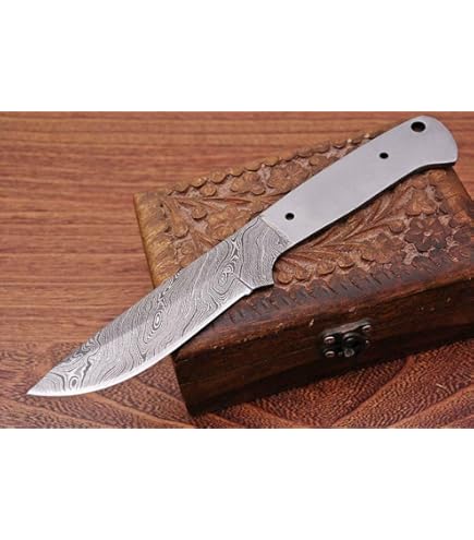 Hey du kreativer Messermacher! Diese Flachangel-Klinge aus echtem Leiterdamast ist einfach der Hammer für deine nächsten Projekte. Mit 80mm Klingenlänge und 3,5mm Stärke ist sie robust und vielseitig einsetzbar. Der Leiterdamast gibt jedem Messer diese einzigartige, wunderschöne Maserung - jedes Stück wird ein Unikat! Die Bohrungen sind schon vorhanden: 3mm für Nietstifte und 6mm für die Fangriemenöse. Super praktisch, oder? Die Gesamtlänge von 190mm gibt dir genug Spielraum für individuellen Griffdesigns. Ob Jagdmesser, Küchenmesser oder Sammlerstück - mit diesem Rohling kannst du deine Ideen verwirklichen. Perfekt für Schmiede, Handwerker und alle, die qualitativ hochwertige Messer selbst herstellen wollen. Einfach bestellen und loslegen - dein nächstes Meisterstück wartet!