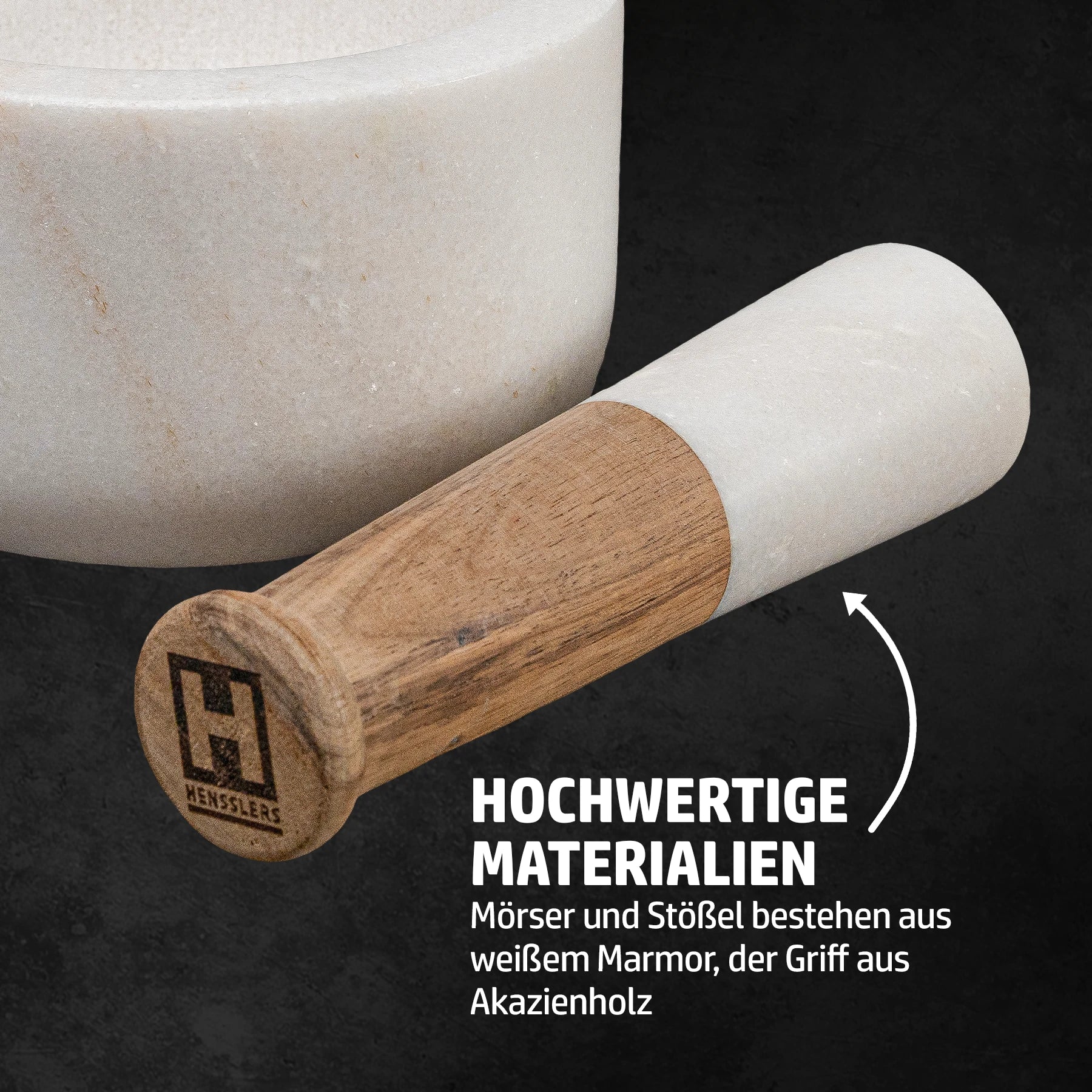 Dieser Mörser aus weißem Marmor ist einfach traumhaft schön und super praktisch! Mit 13cm Durchmesser und 8cm Höhe ist er die perfekte Größe für jede Küche. Aus massivem Naturstein gefertigt - robust, schwer und standsicher. Perfekt zum Zerkleinern von Gewürzen wie Pfeffer, Koriander oder Kreuzkümmel - die Aromen entfalten sich viel intensiver als aus der Tüte! Auch ideal für selbstgemachte Pasten wie Pesto, Guacamole oder Currypaste. Ohne Strom und Plastik - einfach nur Naturstein und deine Muskelkraft! Die raue Innenoberfläche mahlt alles fein und gleichmäßig. Ein echter Hingucker in jeder Küche und ein treuer Begleiter für alle, die gerne frisch und aromatisch kochen. Wenn du also Gewürze lieber frisch mahlst und auf Plastik-Küchenhelfer verzichten willst, ist dieser Mörser genau das Richtige für dich!