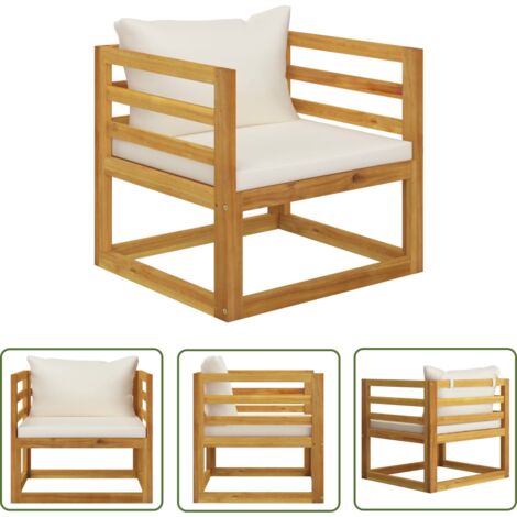 VidaXL Gartenstuhl Aus Massiv-Akazienholz | Mit Cremeweißen Polstern | Wetterfester Gartensessel