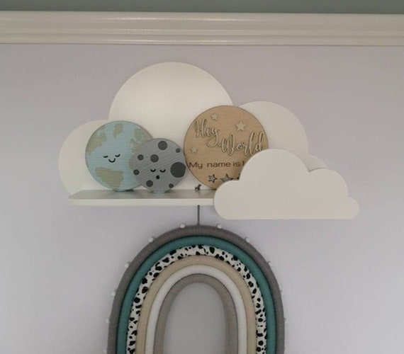 So süß dieses Wolkenregal! Perfekt fürs Kinderzimmer, Kindergarten oder Wohnzimmer. Aus stabilem Massivholz in weiß - sieht aus wie eine flauschige Wolke. Einfach an der Wand montieren (Befestigungsmaterial inklusive). Ideal für Bücher, Spielzeug, Deko oder Nachtlichter. Spart Platz und sieht dabei total niedlich aus. Kann einzeln oder in Gruppen aufgehängt werden. Schafft eine gemütliche, traumhafte Atmosphäre. Einfach montieren und schon hat dein Kind sein eigenes kleines Wolkenschloss!
