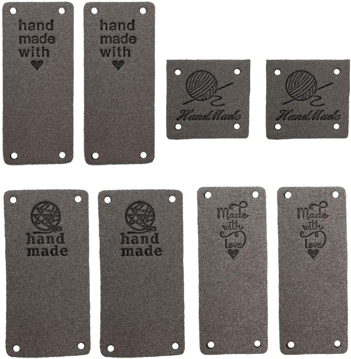 Suchst du die perfekten Etiketten für deine DIY-Projekte? Diese 50 Handmade Labels aus PU-Kunstleder sind genau das, was du brauchst! Jedes Etikett ist 4 x 1 cm groß und trägt die Aufschrift 'Handmade' - perfekt, um deinen Kreationen eine persönliche Note zu verleihen.\\n\\nDie braunen Etiketten haben eine glatte Oberfläche ohne störende Grate, und die Schrift ist deutlich und sauber geprägt. Das praktische Zwei-Loch-Design macht das Annähen super einfach - du brauchst nur Nadel und Faden, und schon sind die Etiketten fest angenäht.\\n\\nEgal ob du Taschen, Geldbörsen, Kleidung, Hüte oder Strickarbeiten verschönerst - diese Labels sind vielseitig einsetzbar. Sie eignen sich sowohl zur Dekoration als auch zur Kennzeichnung deiner handgefertigten Stücke. So weiß jeder sofort, dass es sich um ein Unikat handelt!\\n\\nMit 50 Stück im Set hast du genug Vorrat für viele Projekte. Die klassische braune Farbe passt zu fast allem, und die hochwertige Verarbeitung garantiert, dass die Etiketten lange halten. Einfach aufnähen und deinen Kreationen den letzten Schliff verleihen. Perfekt für alle, die gerne basteln, nähen oder handarbeiten!