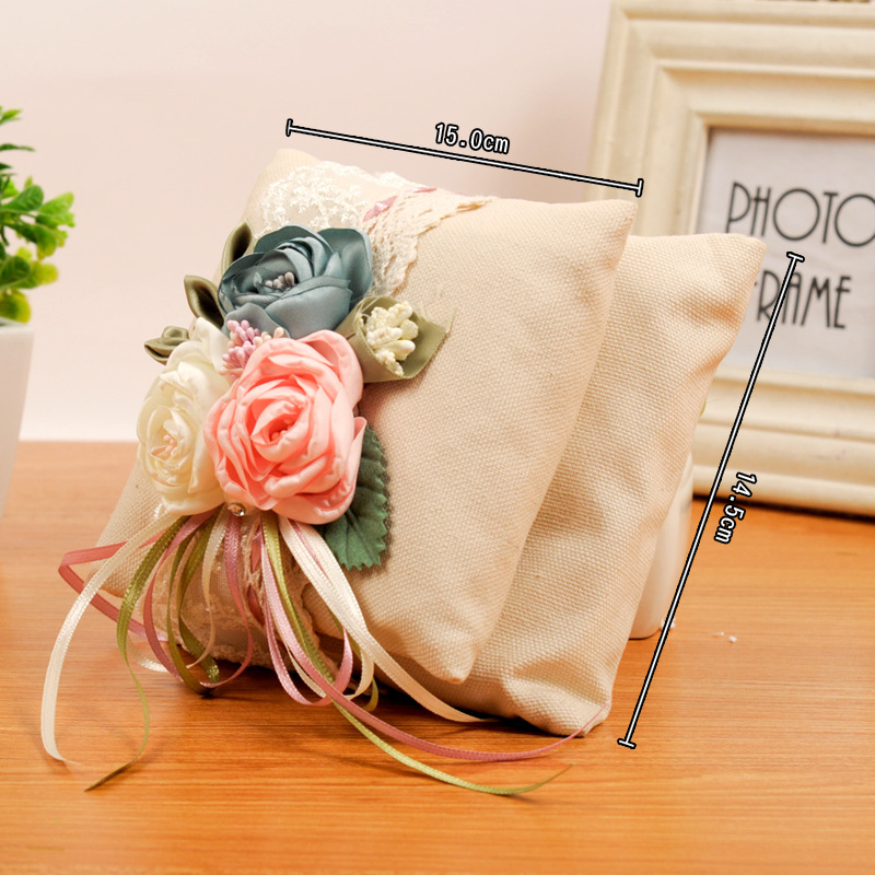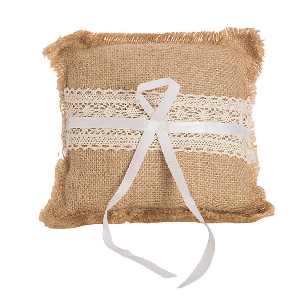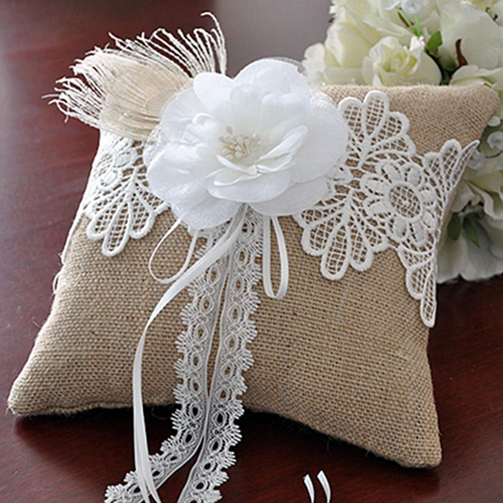 VILLFUL Hochzeits Ringkissen Aus Sackleinen - Eheringhalter Mit Blumenmuster