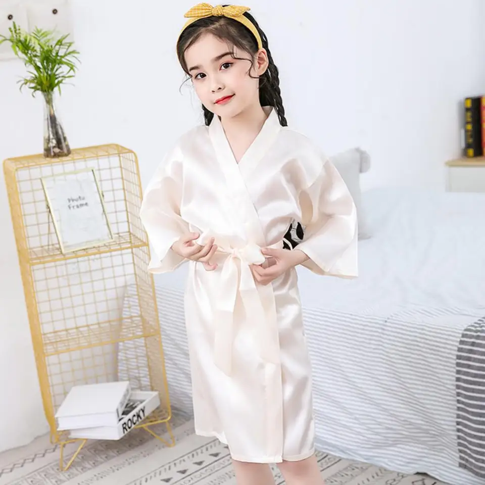 Kinder Bademantel Aus Seidensatin - Weicher Kimono Style Für Jungen & Mädchen 4-12 Jahre