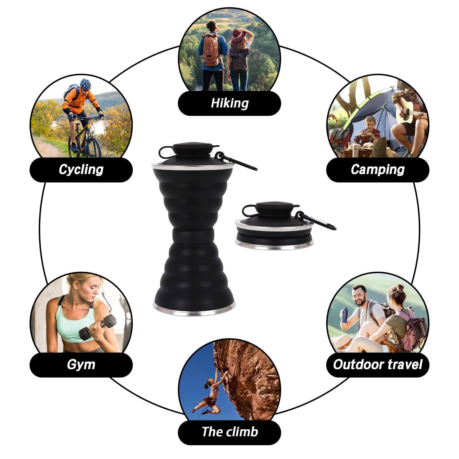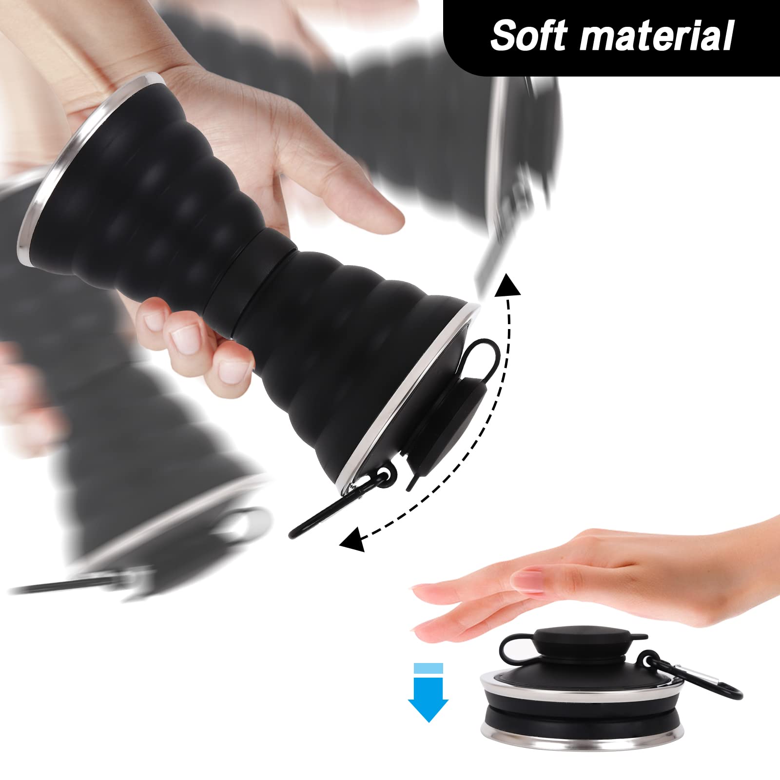 Faltbare Sport-Wasserflasche 500ml Aus Silikon - BPA-frei Mit Karabiner, Auslaufsicher