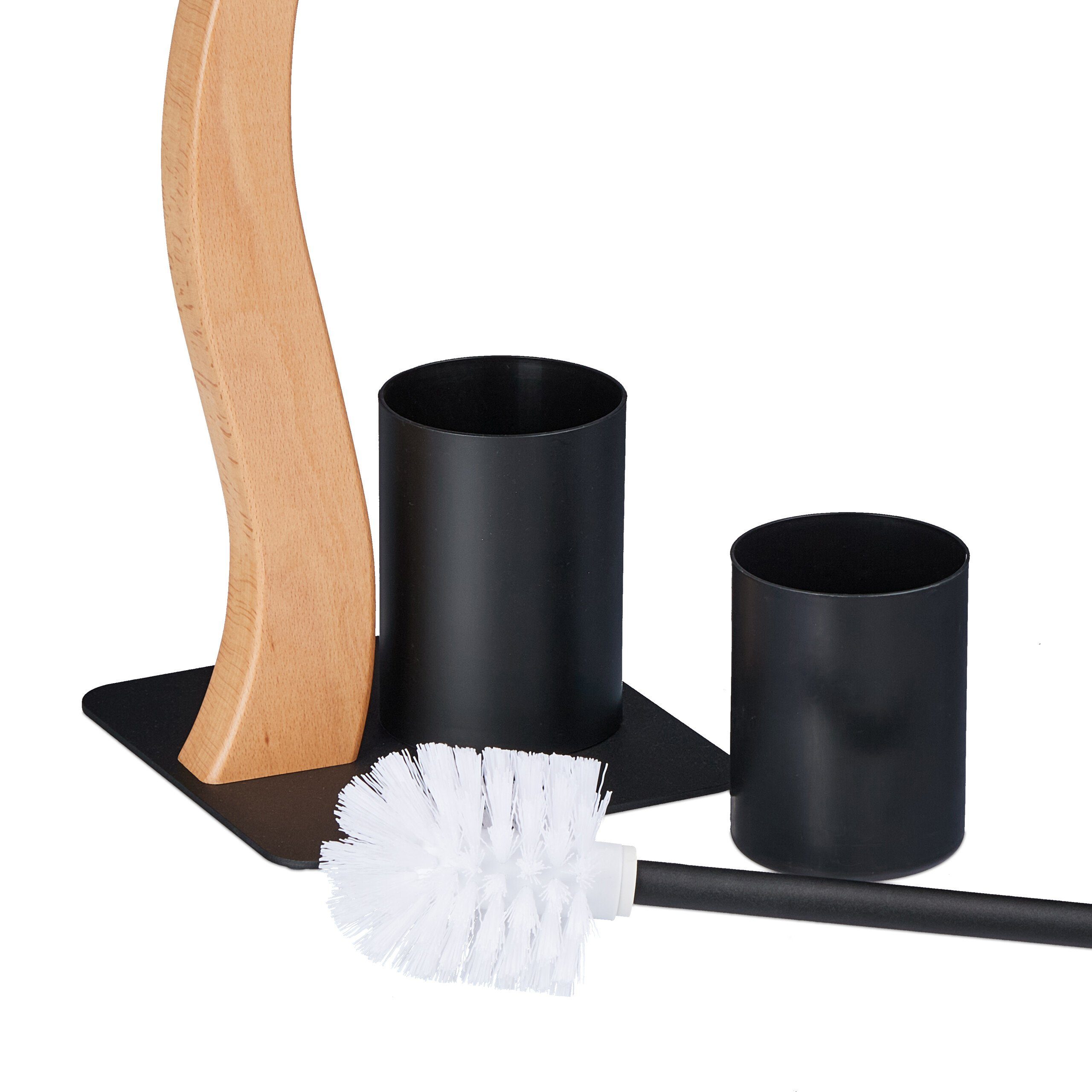 Relaxdays WC Garnitur Aus Stahl & Bambus - Stehender Klopapierhalter Mit Klobürste