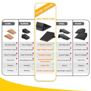 Dieser massive Stahl-Keil für Kniebeugen ist ein echter Game-Changer für dein Training! Mit sagenhaften 2000 Pfund Tragfähigkeit - da kannst du wirklich schwer heben ohne Bedenken. Der Keil sorgt für erhöhte Fersen, was deine Beweglichkeit in der Hocke deutlich verbessert. Besonders wenn du mit engen Knöcheln oder Hüften kämpfst, wirst du den Unterschied sofort merken. Du kannst tiefer in die Kniebeuge gehen und dabei deine Wirbelsäuse aufrechter halten. Super für Squats, Split Squats, Waden-Dehnungen oder Überkopf-Training. Die instabile Oberfläche trainiert zusätzlich deine Balance und kräftigt die Knie- und Beinmuskulatur. Beugt Verletzungen vor, indem es die Muskeln um das Kniegelenk stärkt. Aus dickem, hochwertigem Stahl - hält ein Leben lang. Ob du Anfänger oder Profi bist - dieser Keil wird dein Training auf das nächste Level bringen!