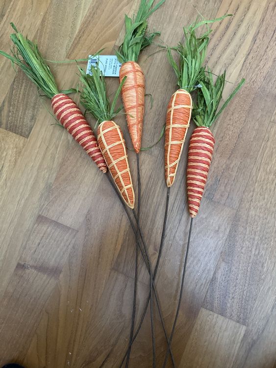 Oh, wie süß! Diese 12 Mini-Karotten aus Styropor bringen sofort Frühlingsstimmung in Dein Zuhause. Mit ihrem kräftigen Orange und dem grünen Stiel sehen sie aus, als wären sie frisch aus dem Garten gezogen. Perfekt für Osterkränze, -nester oder als Deko auf dem Esstisch. Du kannst sie einfach mit Draht oder Heißkleber befestigen und mit anderen Frühlingsaccessoires kombinieren. Achtung: Enthält Materialien, die Hautreizungen verursachen können – also am besten von Kindern und Haustieren fernhalten. Ob als Hasenfutter-Attrappe oder einfach als hübsches Detail – mit diesen Karotten wird Deine Osterdeko zum Hingucker!