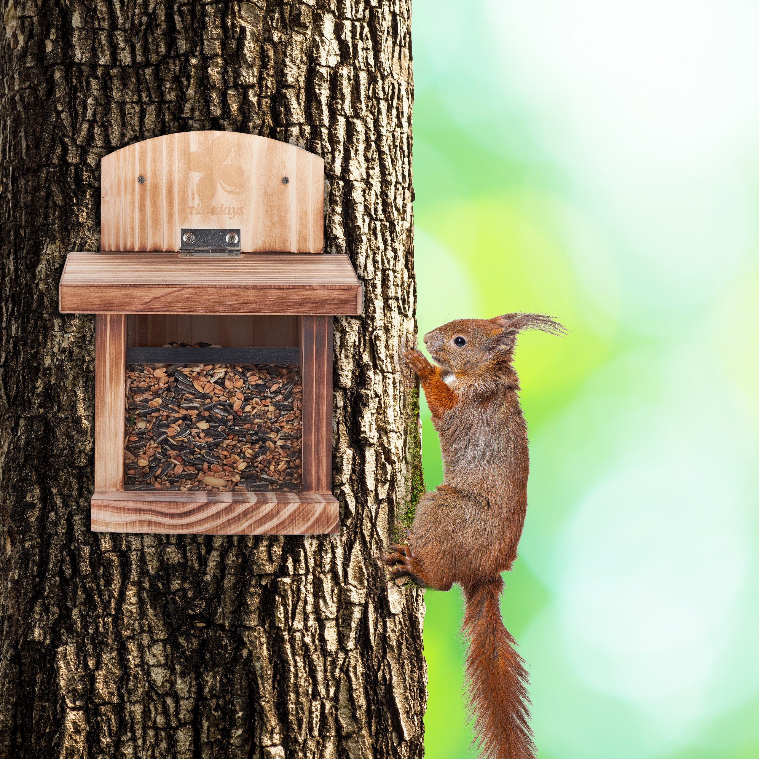 Maße: 26x25x29cm (LxBxH). Mach deinen Garten zum Eichhörnchen-Paradies! Die kleinen Tierchen werden's dir danken und du hast immer was zu beobachten. Einfach aufhängen und die possierlichen Tierchen beim Einzug beobachten!