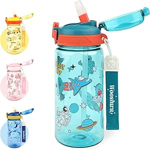 Wooshwa Kinder Trinkflasche 480ml - Auslaufsicher Mit Strohhalm BPA-frei