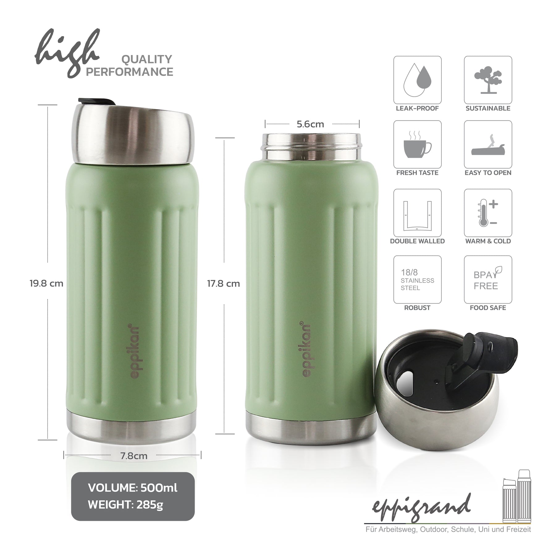 Edelstahl Thermobecher 500ml - Auslaufsicherer Isolierbecher Für Heiß & Kalt