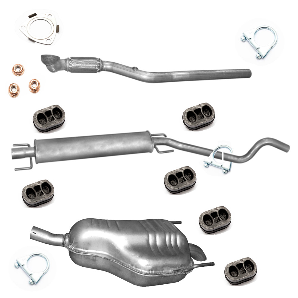 Dein Opel Astra G braucht einen neuen Auspuff? Dieses Komplett-Set hat alles, was du brauchst! Perfekt passend für Astra G 1.4i und 1.6i mit den Motoren X14XE, X14XEP, X16SZR, Z16SE. Im Lieferumfang: Mitteltopf, Endtopf und komplettes Montagematerial. Aus hochwertigem THYSSEN KRUPP Stahl, doppelt aluminiert für maximale Korrosionsbeständigkeit. Mit Glasfaser gedämpft für den originalen Sound. Einfach montieren - passt genau an die originalen Befestigungspunkte. Für Schrägheck und Fließheck von 1998-2009. Dein Auto wird wieder leise und umweltfreundlich unterwegs sein. Einfach bestellen, einbauen und die Fahrt genießen. Qualität, die sich lohnt!