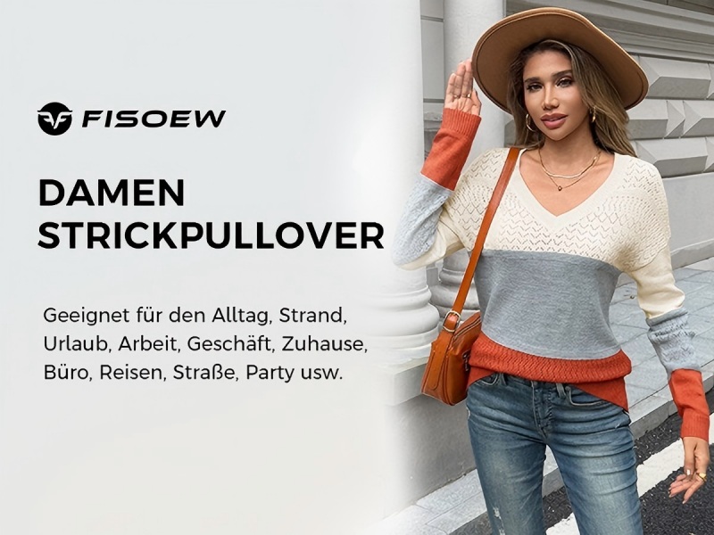 Stylish und super bequem - dieser V-Ausschnitt Pullover von Fisoew wird dein neuer Liebling! Mit trendigem Häkelmuster und gerippter Struktur liegt er weich auf der Haut und ist dabei schön luftig. Die lockere Passform sitzt lässig und verzeiht so manchen Feiertagsschmaus. Der V-Ausschnitt ist dezent und passt perfekt zu Ketten oder alleine getragen. Aus hochwertigem, atmungsaktivem Material - ideal für den Übergang oder milde Wintertage. Kombinier ihn mit Jeans, Leggings oder Röcken - der Style passt immer! Perfekt für Büro, Uni, Stadtbummel oder gemütliche Abende daheim. Maschinenwaschbar - praktisch für den Alltag. Verfügbar in verschiedenen Farben - such dir deinen Favoriten aus! Ob mit oder ohne Schichtung - dieser Pullover macht immer eine gute Figur. Einfach anziehen und wohlfühlen - mehr braucht es nicht für perfekte Herbst- und Wintertage! Dein neuer Go-To-Pullover für jede Gelegenheit - stylisch, bequem und vielseitig!