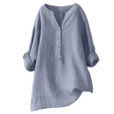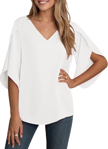 Musselin Bluse Damen Sommer - V-Ausschnitt Tunika Lässiges Oberteil Aus Polyester