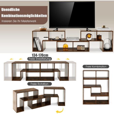 Boah, dieser TV-Schrank ist ja mal richtig clever! Er lässt sich von 160 cm auf 200 cm ausziehen und hat sogar einen drehbaren Teil für die Ecke. Perfekt für Fernseher von 30 bis 75 Zoll.