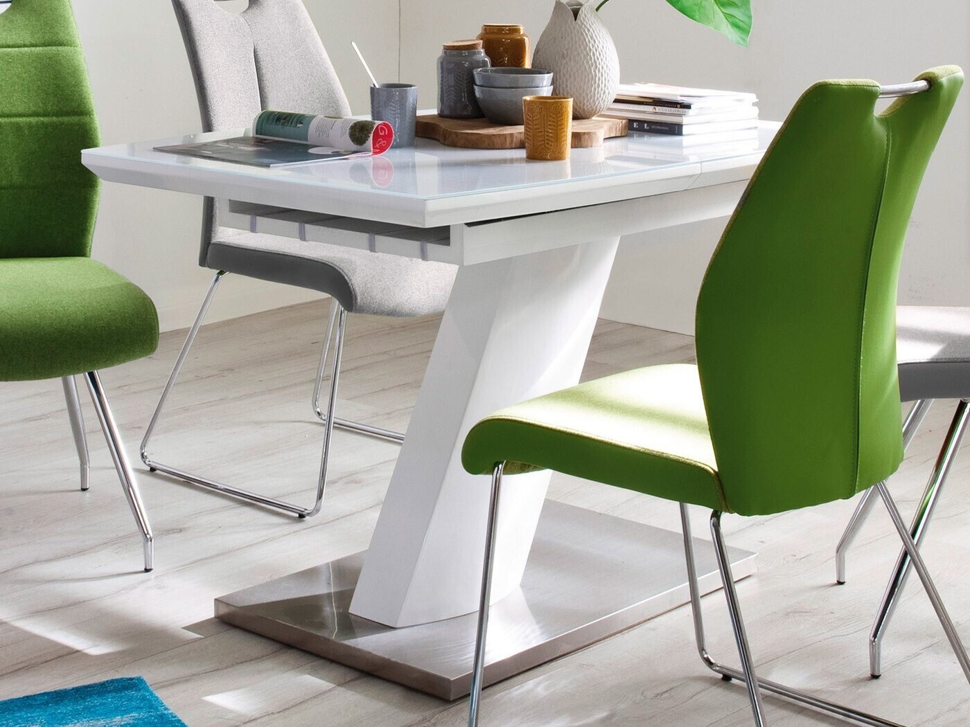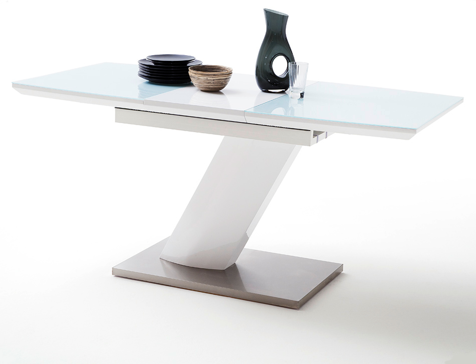 Hela Elvira Esstisch Ausziehbar - Hochglanz Weiß Mit Glas 120-160cm